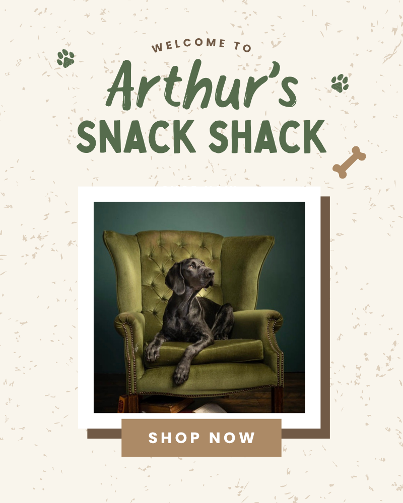 I'm a German Short-haired Pointer with a nose for adventure and tasty treats. While Mum and Dad are off working, I enjoy long-lasting, natural, delicious chews. With a mix of puppy eyes, charm and good behaviour, I’ve managed to convince Mum and Dad to start Arthur’s Snack Shack! Now, they’re sharing the joy of offering healthy, natural treats to other four-legged friends across the UK.
